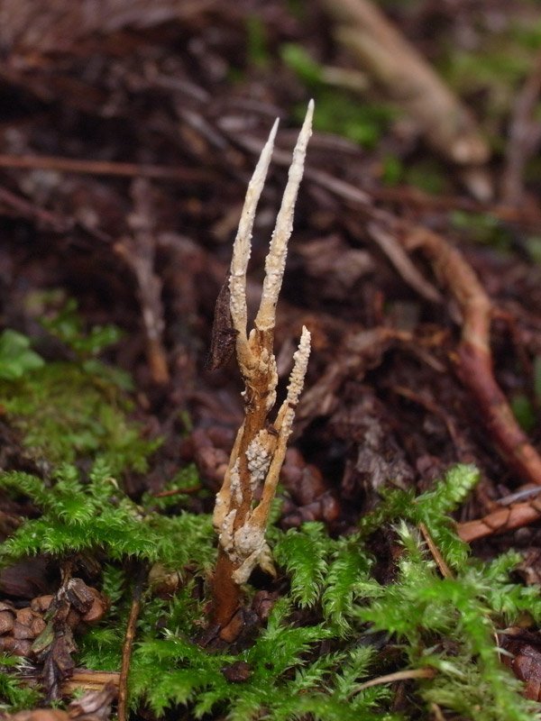 C. prolifica is a perennial species. Even after releasing its spores, the fungus remains in place, and new growths often sprout from the same body the following year. I’ve been watching one specimen for four years now, and it keeps sending up new spikes. When left undisturbed, they form quite a magnificent stand. If you don’t dig them up, you can witness this slow transformation for yourself.