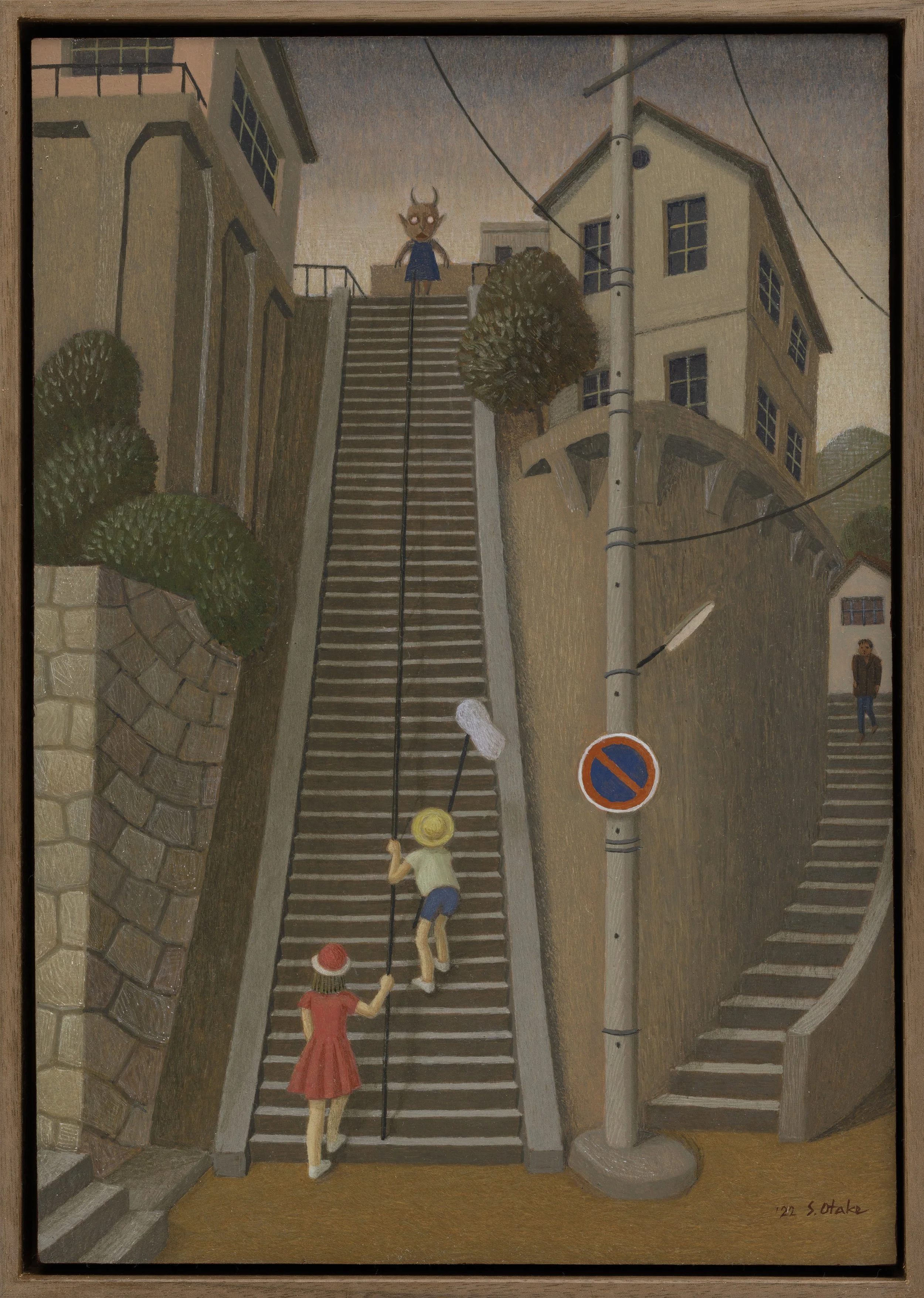 Beyond publicly legible spaces, the alleys of his childhood and places where he once paused and imagined now overlap and converge, generating a surging yet secret internal force. The Demon on the Fifty Steps (2022) points to a playground from his youth, near the Christian elementary school where he first received his education. Surely the Demon’s House (2025) and The House Full of Windows (2025) reflect the artist’s curiosity about and imagination of the inner possibilities of enclosed and open spaces. Much like Julio Cortázar’s description of an unknown presence in Casa Tomada, that unnamed force and the anxiety it brings to space are given a more intimate and enduring form in Otake’s work. Moving between collective memory and private domains, these images do not depict static spaces but rather serve as portals through which psychological fissures and symbolic redemption are released.
